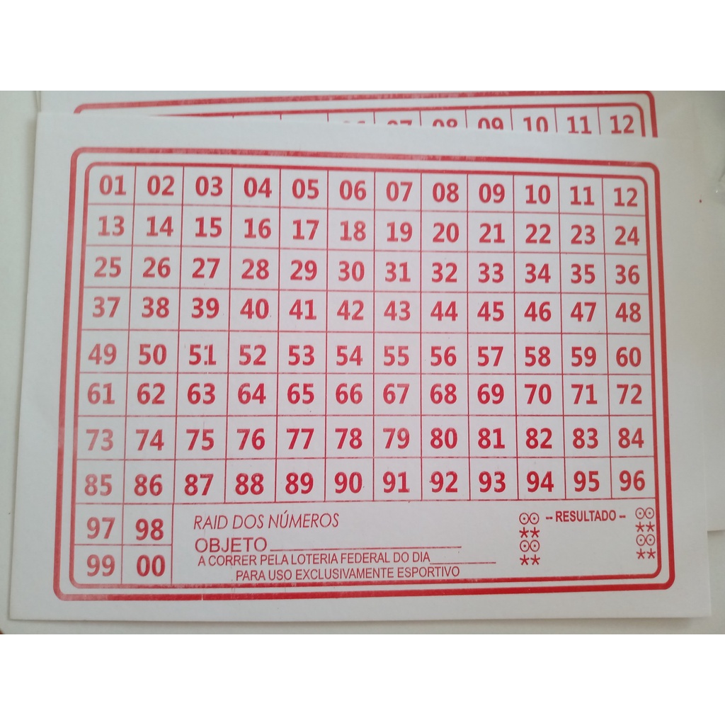 Cartela de rifa 100 números pct c/ 10 unidades Shopee Brasil