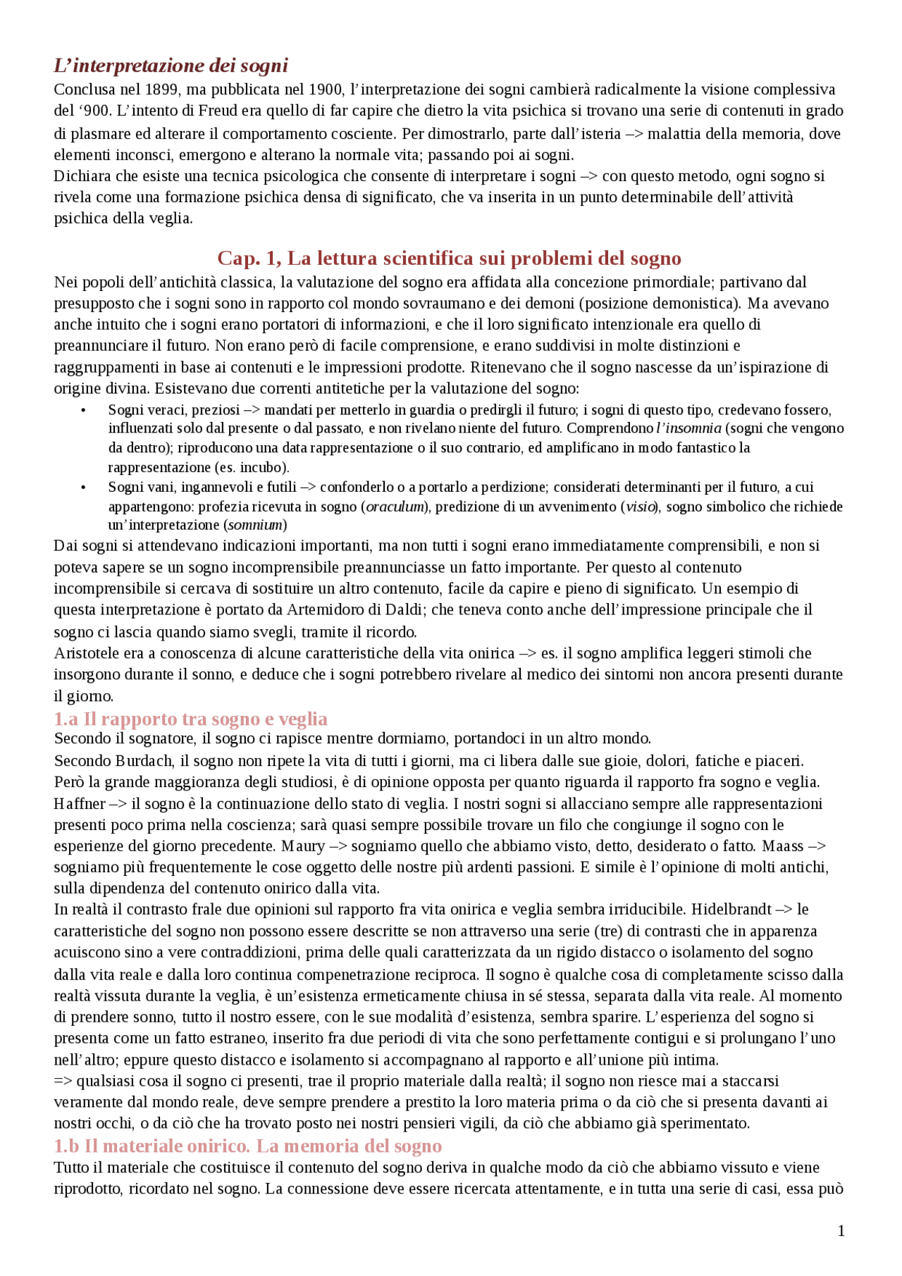 Riassunto "L'interpretazione dei sogni" di Freud Docsity