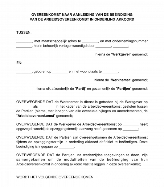 Overeenkomst naar aanleiding van de beëindiging van de arbeidsovereenkomst in onderling akkoord